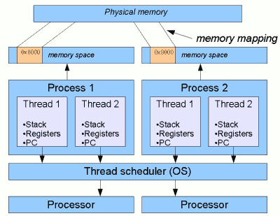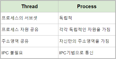 - 하나의 프로세스에 여러개의 스레드 생성 가능
