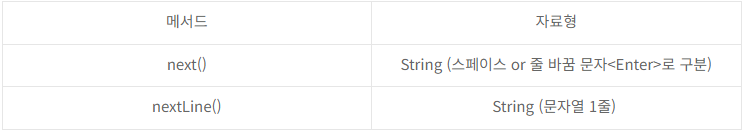 따라서 공백이 있는 한줄을 리턴받고 싶으면 nextLine() 메소드를 사용하고,