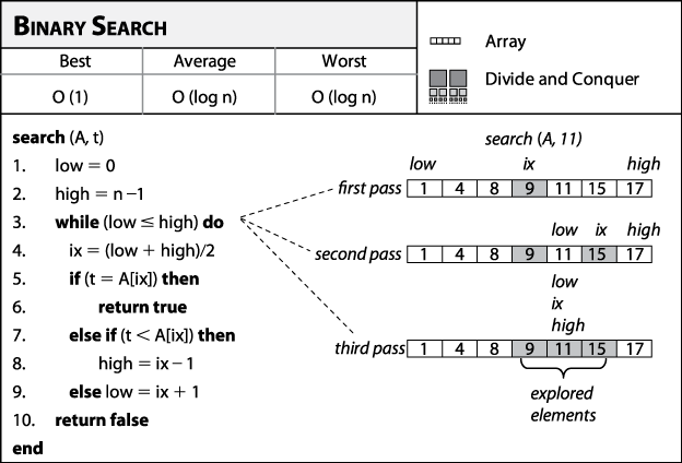 - 정렬된 상태의 데이터에서 특정값을 빠르게 탐색하는 방법