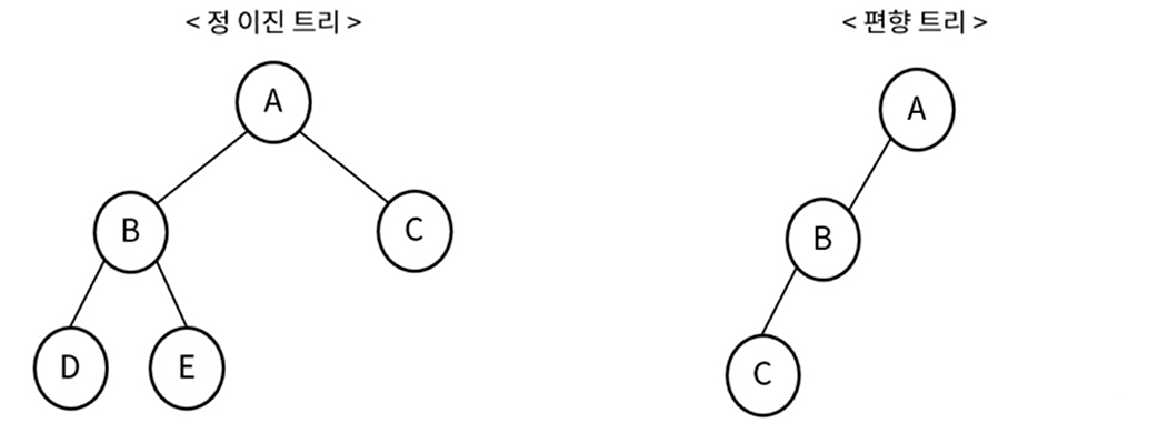 - 편향 트리 (Skewed Binary Tree) : 한 쪽으로 기울어진 트리 , 사향 트리