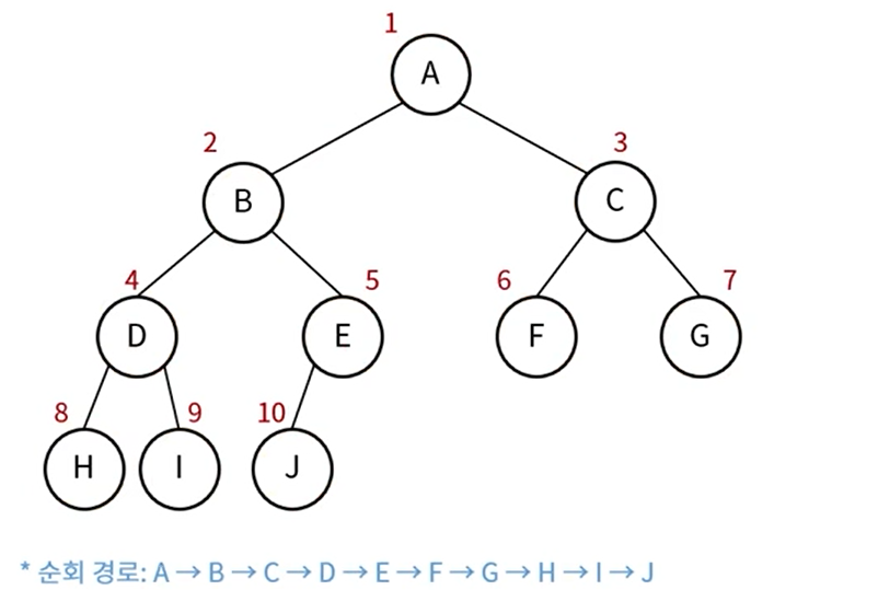 - 방문순서 : 위쪽 레벨부터 노드 -> 오른쪽 노드