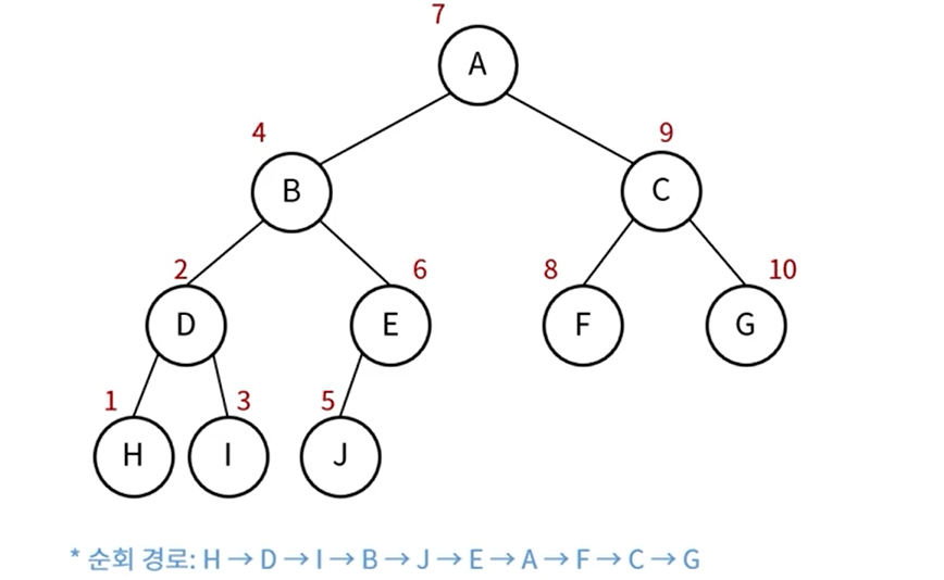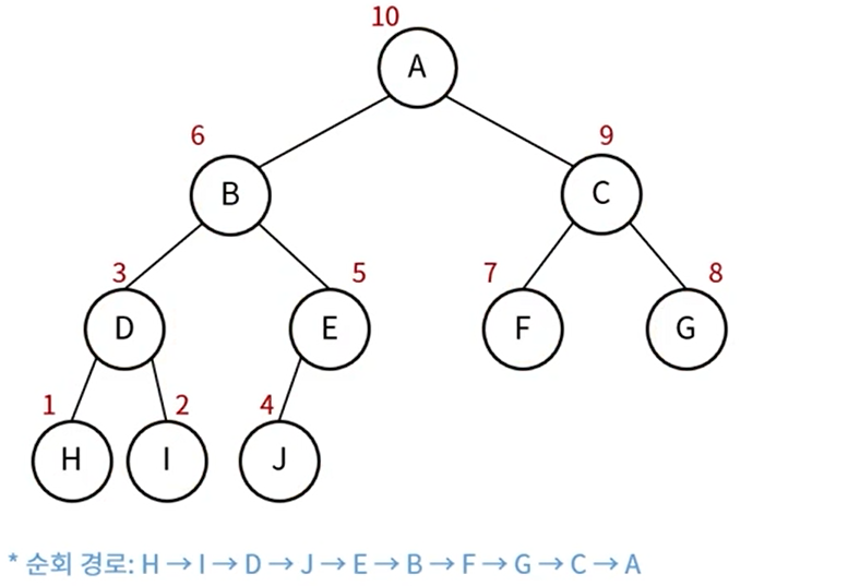 - 방문순서 : 왼쪽 노드 -> 오른쪽 노드 -> 현재 노드