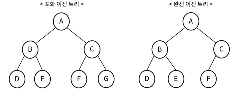 - 완전 이진 트리 (Complete Binary Tree) : 마지막 레벨을 제외하고 노드들이 모드 채워져 있는 트리