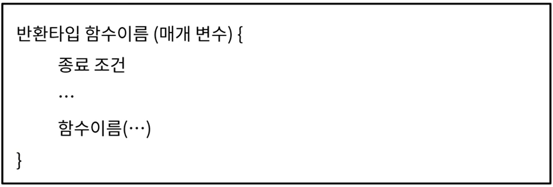 어떤 함수가 자신을 다시 호출하여 작업을 수행하는 방식