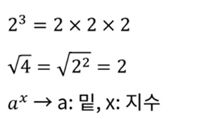 - 거듭 제곱 : 같은 수를 거듭하여 곱함