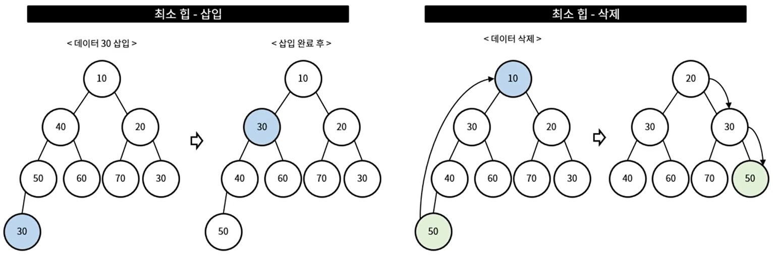 - 최소 힙 및 최대 힙의 삽입 삭제가 같다