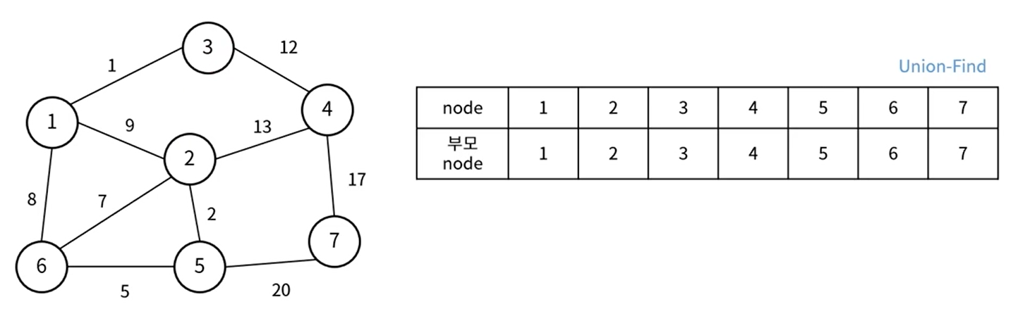 - 그래프 상의 모든 노드들을 최소 비용으로 연결하는 방법